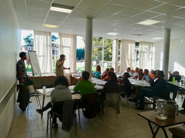 They organise regular workshops and courses. Their aim is to galvanise an intergenerational local transition network. They promote mutual aid and non-profit actions.